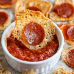 - Pair your pepperoni chips with a warm bowl of marinara sauce for tasty dipping.