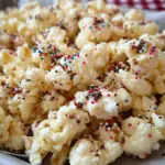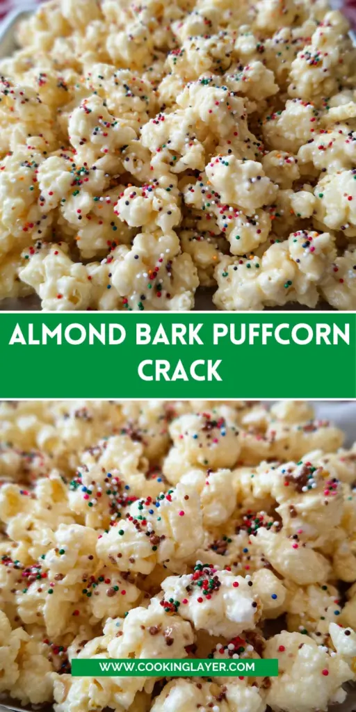 Almond Bark Puffcorn Crack is a sweet and crunchy treat made with buttery puffcorn and creamy almond bark, finished off with colorful sprinkles for an extra touch.