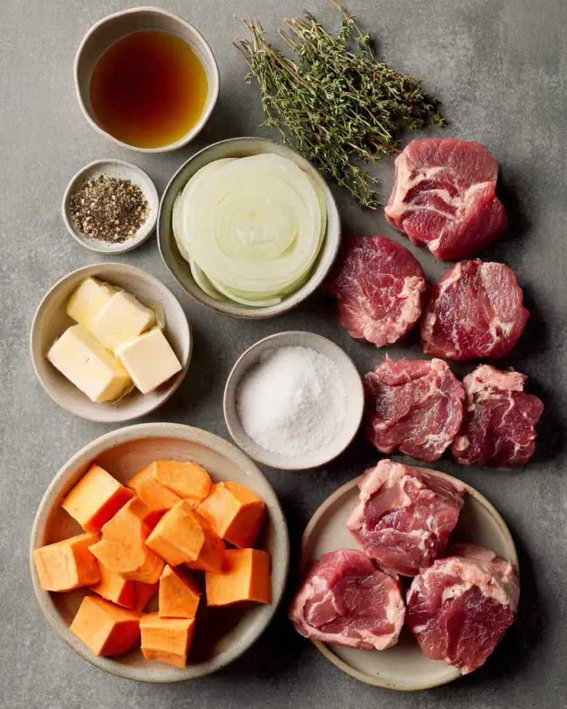 Gathering the right ingredients is the first step on your culinary adventure! Here’s what you’ll need for Apple Cider Pork with Mashed Sweet Potatoes.