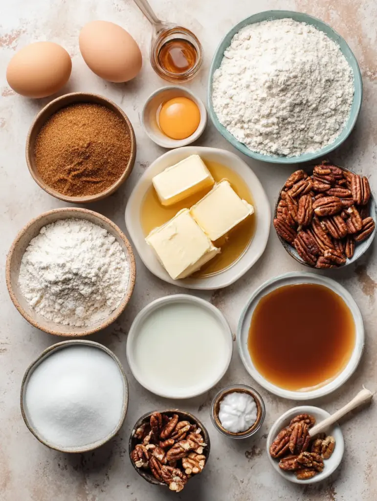 You won’t find any complicated ingredients here—just pantry staples like flour, eggs, butter, and brown sugar. But when they come together, magic happens. The combination of caramelized sugar, nutty pecans, and melted butter creates that nostalgic, homemade flavor that feels comforting and familiar.