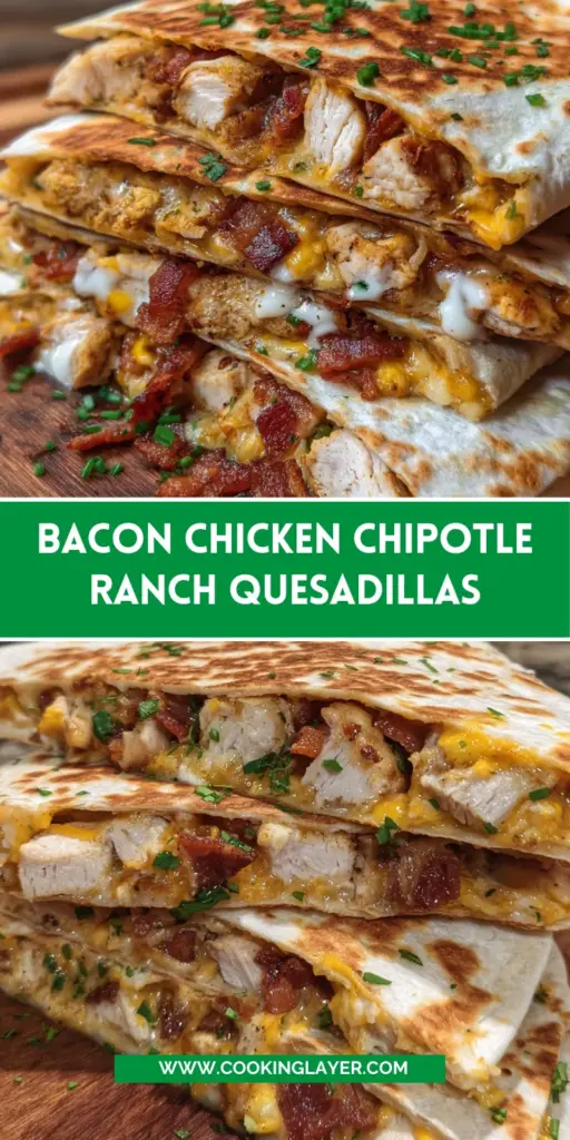 Making Bacon Chicken Chipotle Ranch Quesadillas is not just about the delicious bites; it’s about creating moments of joy around the dinner table. This recipe brings together the bold flavors everyone craves, paired with the warmth of home-cooked meals. It’s quick enough for even the busiest of schedules, allowing us to celebrate everyday victories. As you serve these delectable quesadillas, you’ll see smiles light up the room. So grab your ingredients, get your family involved, and turn mealtime into a cherished experience that lingers long after the last bite!