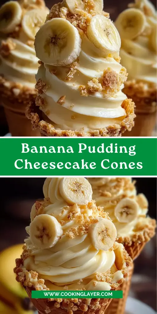 Lastly, sprinkle more crushed vanilla wafers on top for a crunchy finish. These Banana Pudding Cheesecake Cones aren’t just a treat for your taste buds; they’ll look stunning on any table. Serve immediately and watch those smiles blossom!