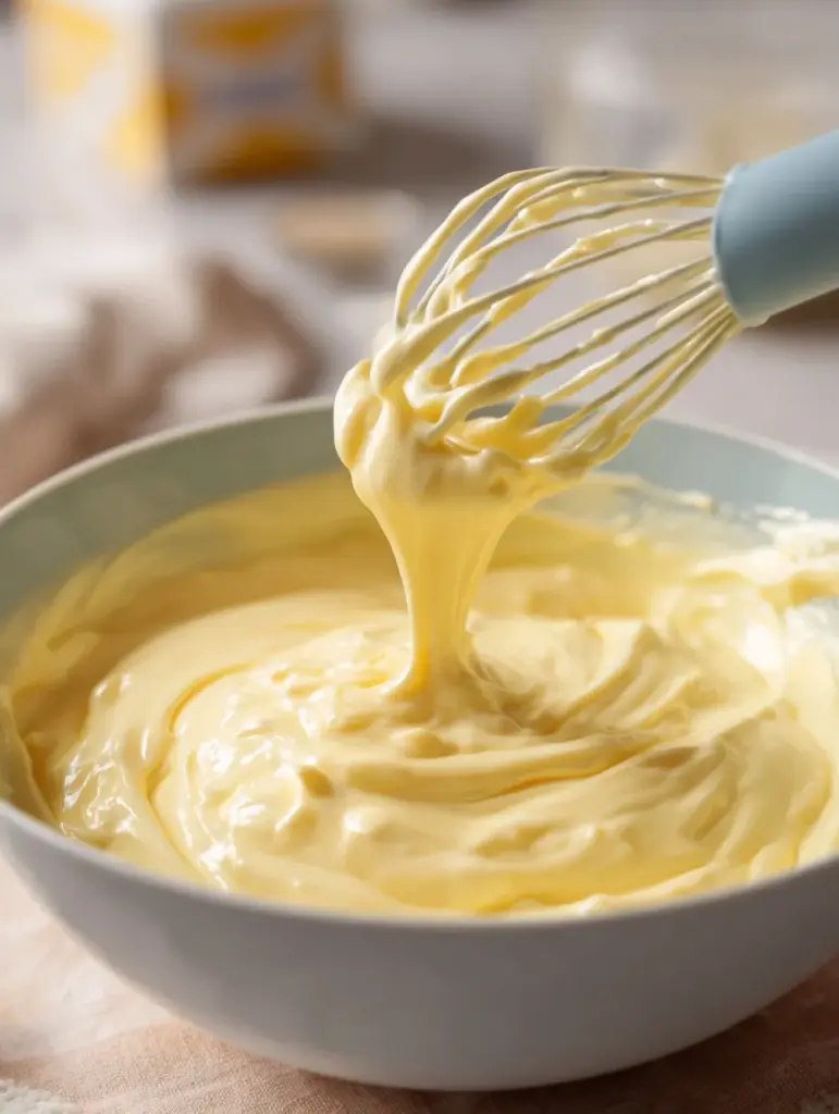 Immediately whisk in dry banana pudding mix until fully dissolved and pale yellow. ⏱️ 2 minutes