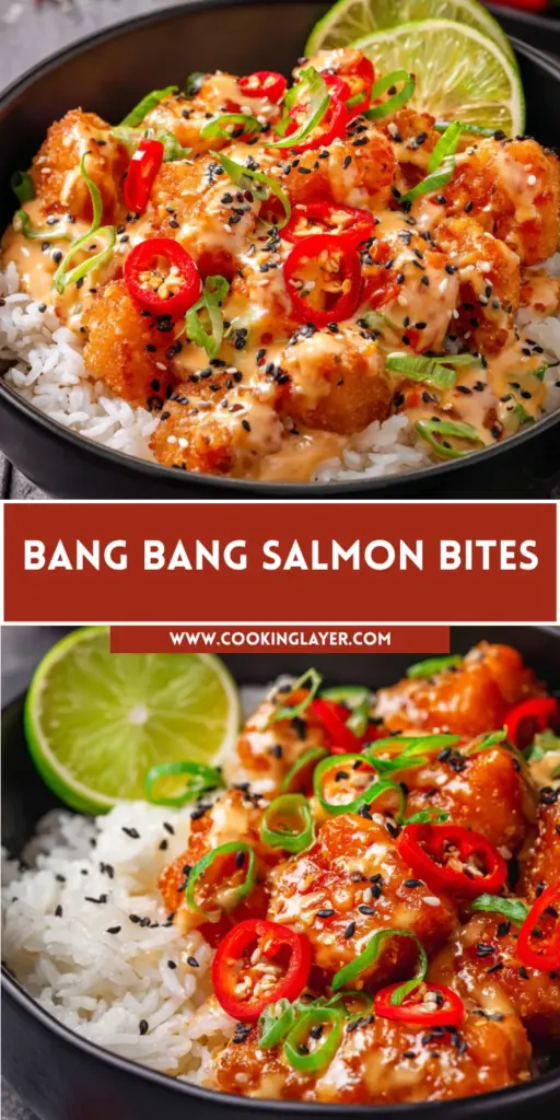 Bang Bang Salmon Bites are crispy, flavorful pieces of salmon coated in a spicy and creamy sauce, perfect for any occasion.