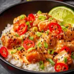 To serve, scoop some Jasmine or Basmati rice into bowls. Top it with your crispy salmon bites, then drizzle with that yummy Bang Bang sauce. Garnish with sliced green onions, fresh red chili slices, and a sprinkle of sesame seeds for that restaurant-style flair. Ready to impress?