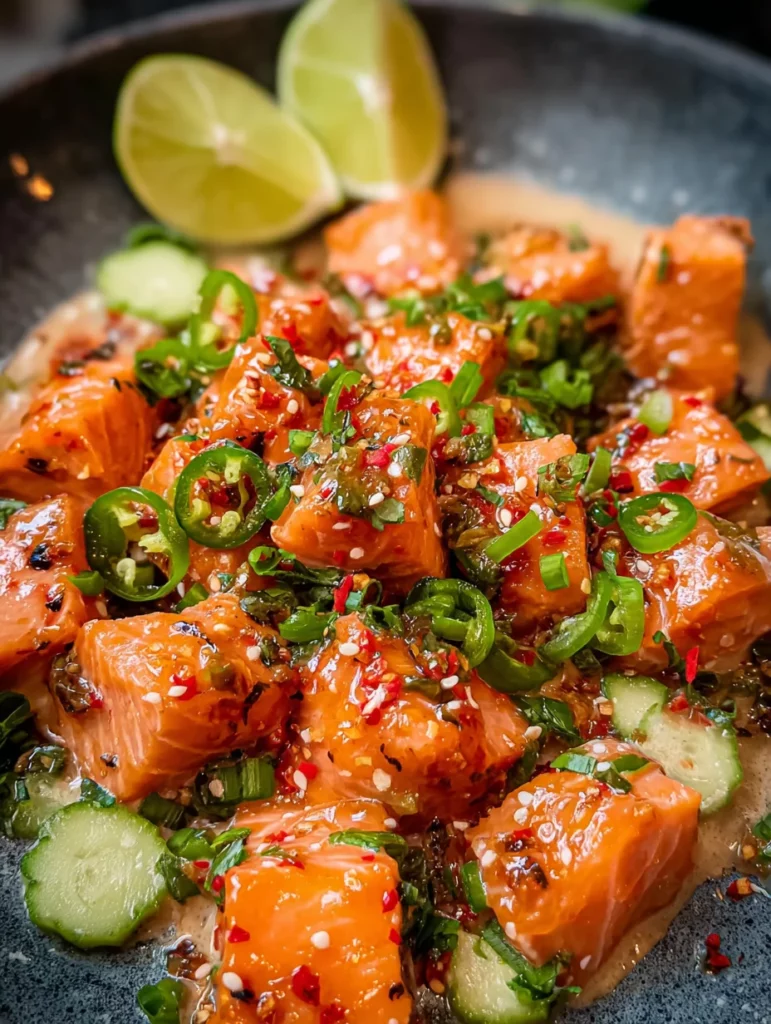 Bang Bang Salmon is a flavorful dish featuring tender salmon fillets coated with a spicy and sweet sauce, perfect for any seafood lover.