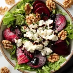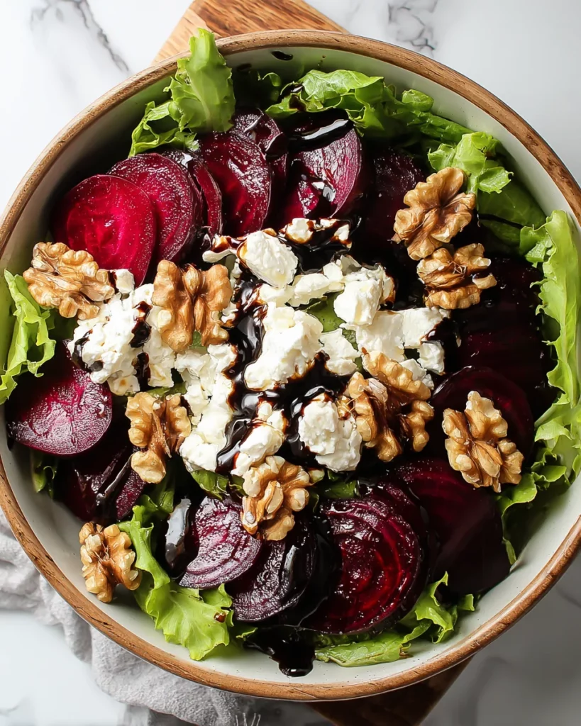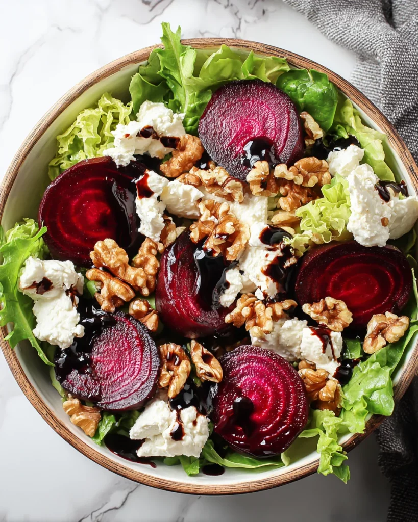 A refreshing and nutritious salad featuring roasted beets, creamy goat cheese, and crunchy walnuts, perfect for a healthy meal or side dish.