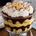 Boston Cream Pie Trifle is a delightful layered dessert that combines fluffy yellow cake, rich French vanilla pudding, and smooth chocolate filling, all topped with whipped cream.