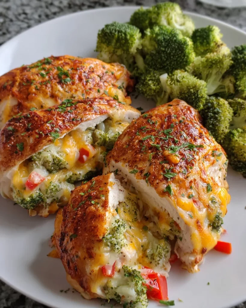 Broccoli and Cheese Stuffed Chicken is a delicious and satisfying recipe featuring tender chicken breasts filled with a flavorful broccoli and cheese mixture, perfect for a family dinner.