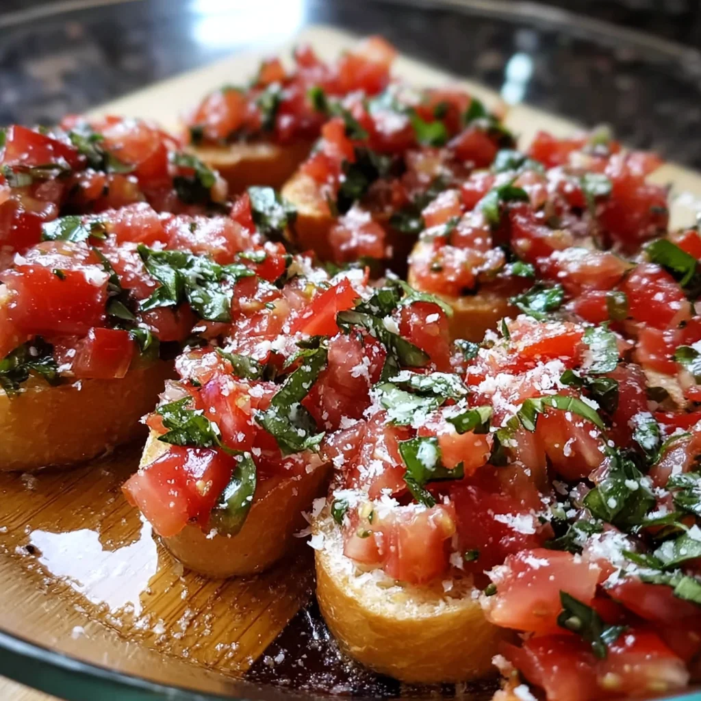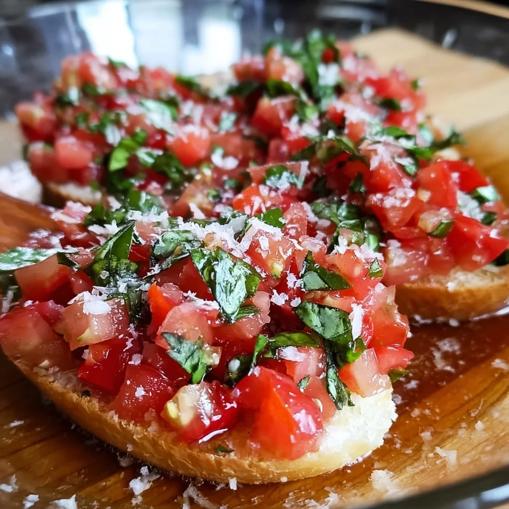 A delicious and fresh bruschetta recipe, perfect for summer gatherings as a starter or appetizer.