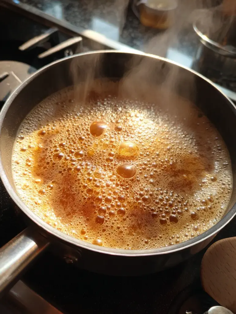 In a saucepan, melt butter over medium heat, then stir in brown sugar, honey, and salt. Bring to a boil and cook for 3–4 minutes without stirring. (⏱ 7 minutes)