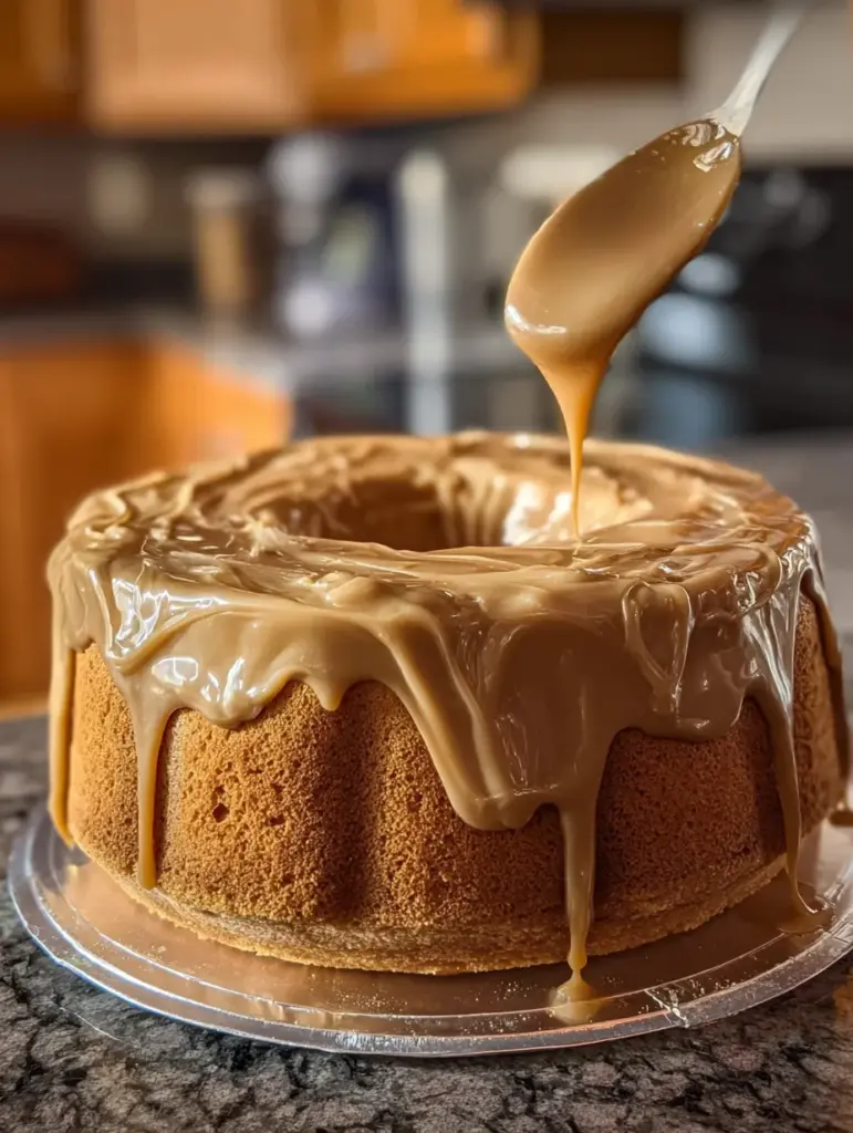 12. Drizzle the warm caramel icing generously over the cooled cake. 🍰 (2 minutes)