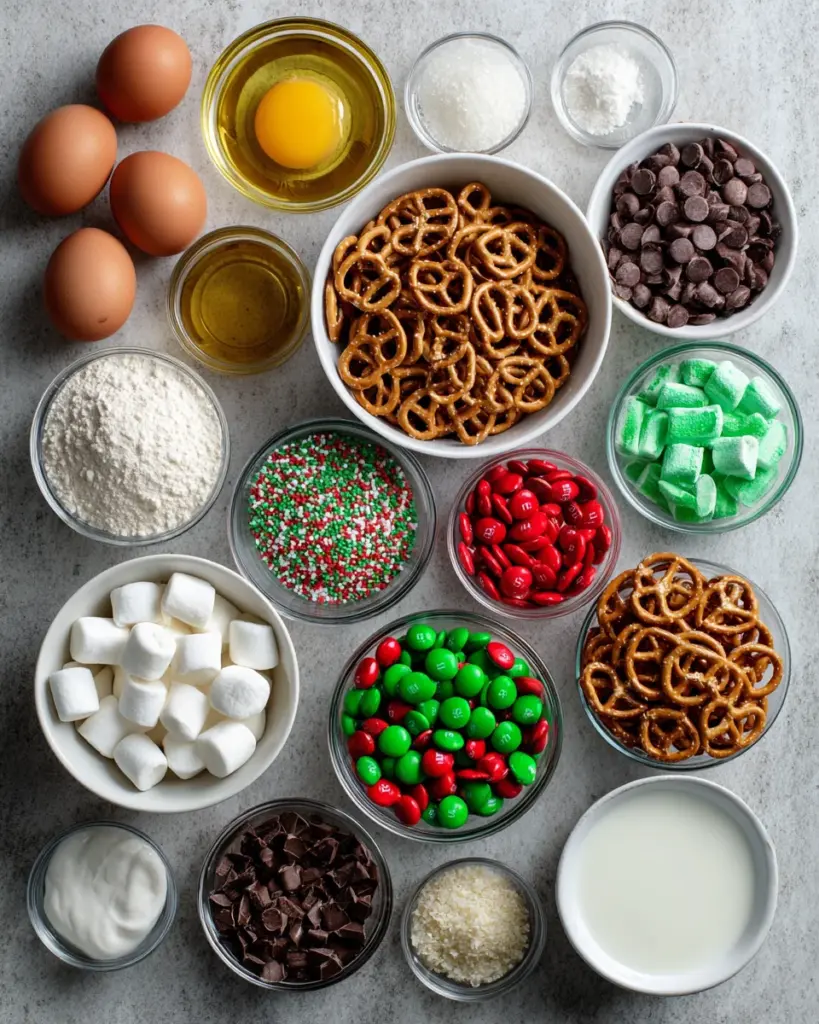 - Christmas M&Ms: These fun, colorful candies add a festive touch and a delightful crunch. Feel free to substitute with holiday-themed chocolate candies!