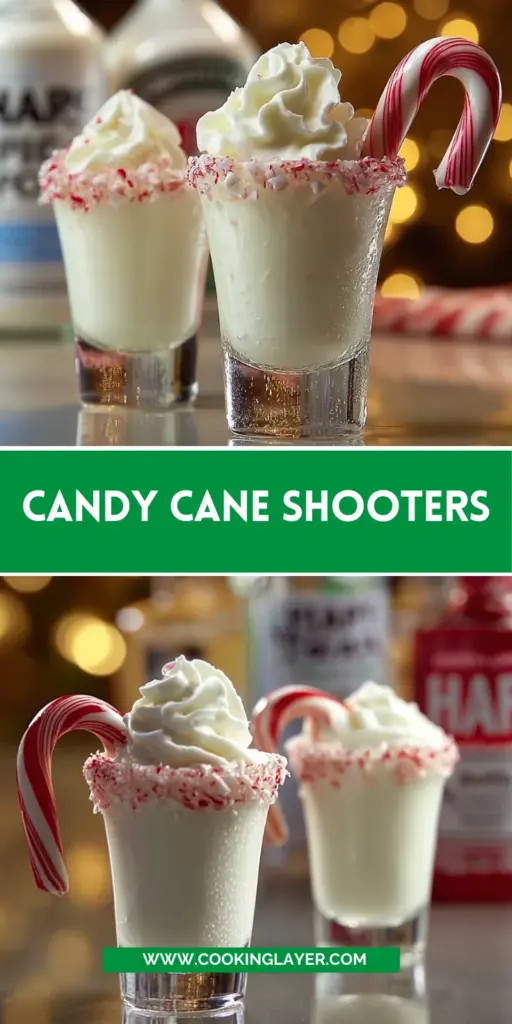 Candy Cane Shooters are a festive and delightful treat perfect for holiday celebrations, combining peppermint schnapps, white chocolate liqueur, and half & half for a creamy shot topped with whipped cream and candy canes.