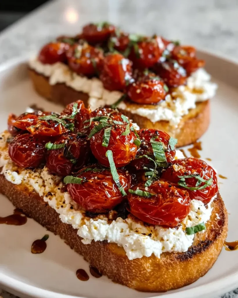 A delicious and refreshing twist on traditional toast featuring cottage cheese, bursting cherry tomatoes, and fresh basil.