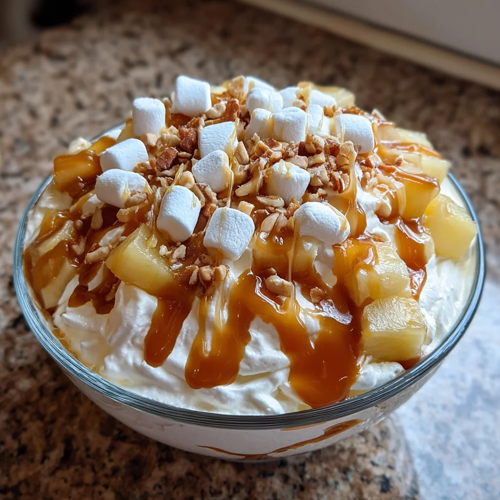 The final touch makes your Caramel Apple Fluff not just delicious but also irresistibly inviting.