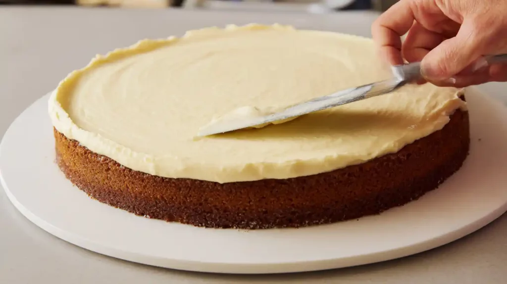 Spread this filling evenly across the first cake layer (or across the 9×13 if using that pan). The creaminess balances the sweetness of the caramel-soaked cake, creating contrast in both flavor and texture.