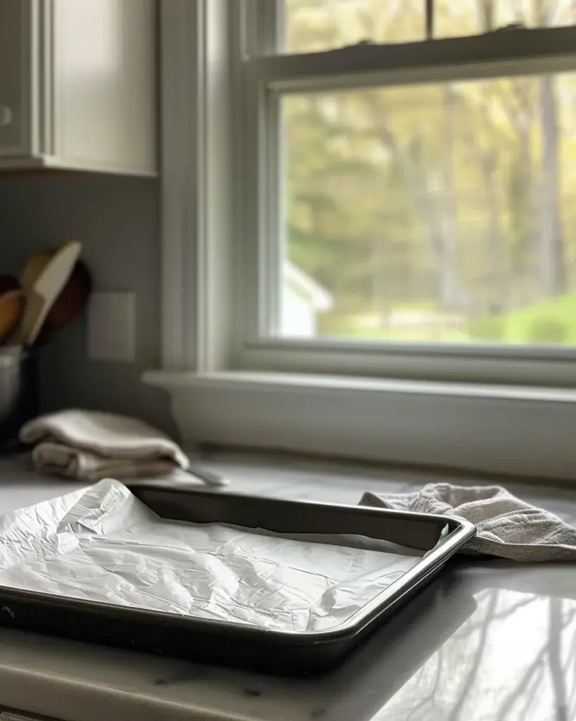 Preheat oven to 350°F (175°C) and line a 9×13-inch pan with parchment paper, leaving overhang for easy lifting. ⏱️ 5 minutes