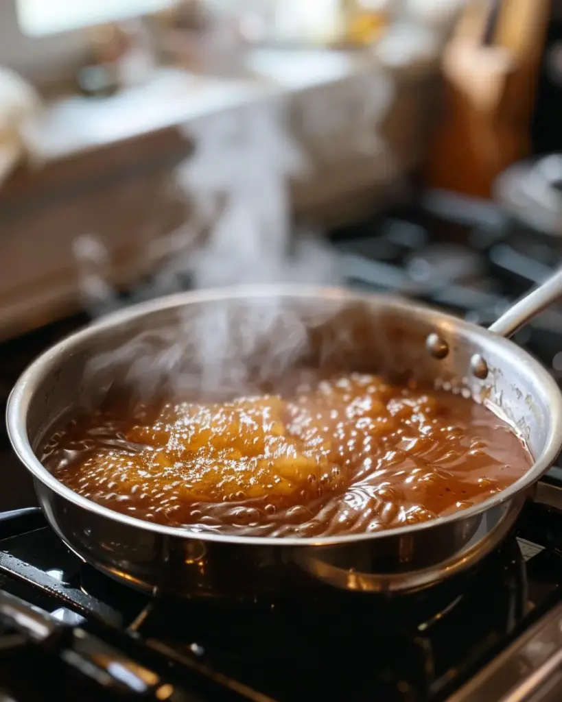 Place the pan in a preheated 350°F (175°C) oven and bake for 5 minutes. The caramel should be bubbling and slightly darker in color.