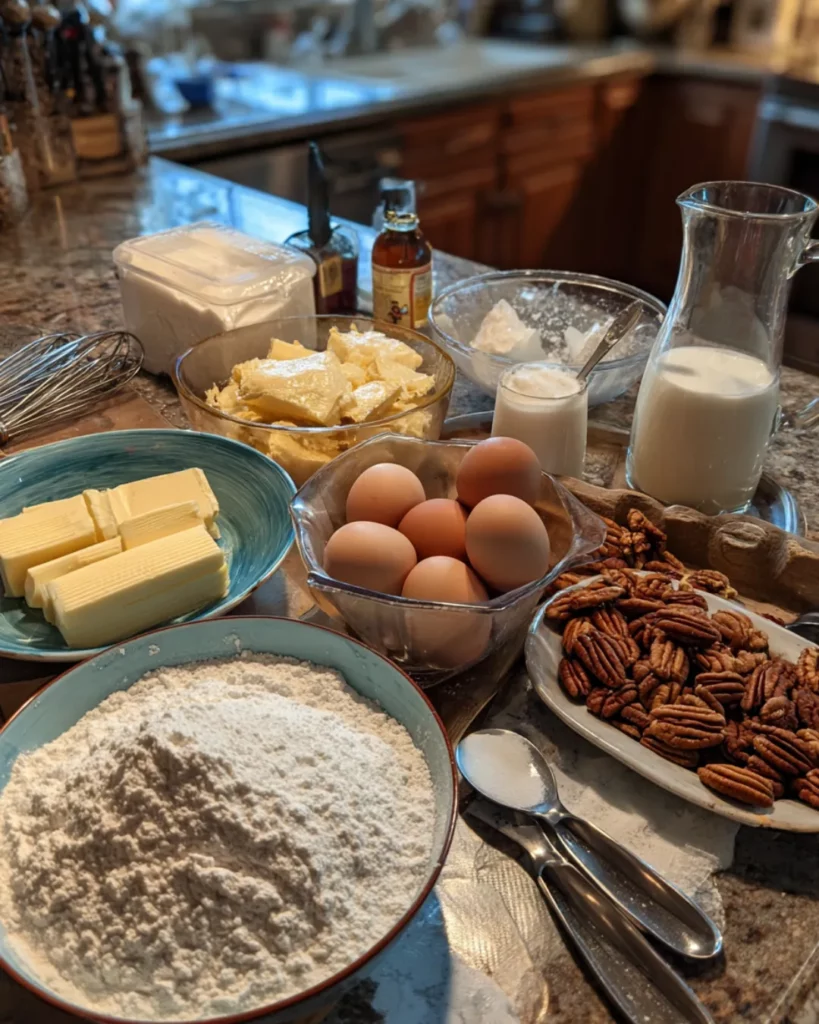 - Crunchy, nutty pecans: Pecans add the perfect balance of texture and flavor. Toasty, buttery, and slightly earthy, they make the cake extra indulgent.