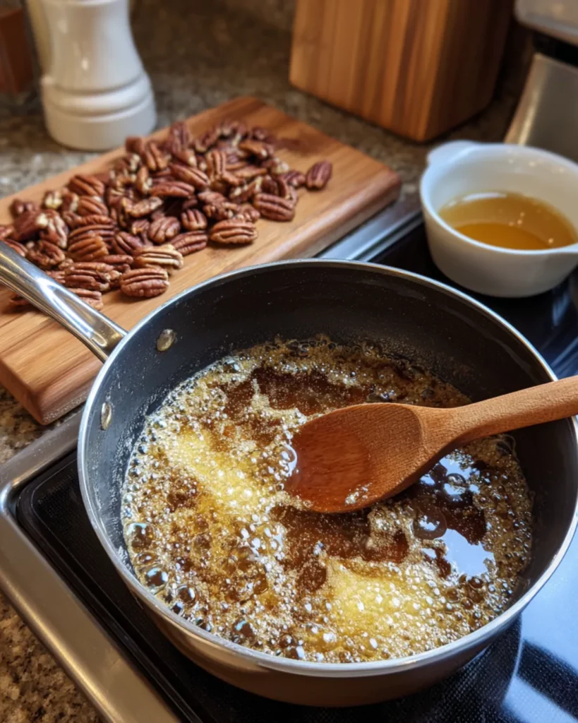 - Toast your pecans (optional): For extra flavor, toast the pecans in the oven for 5–7 minutes before adding them to the caramel.