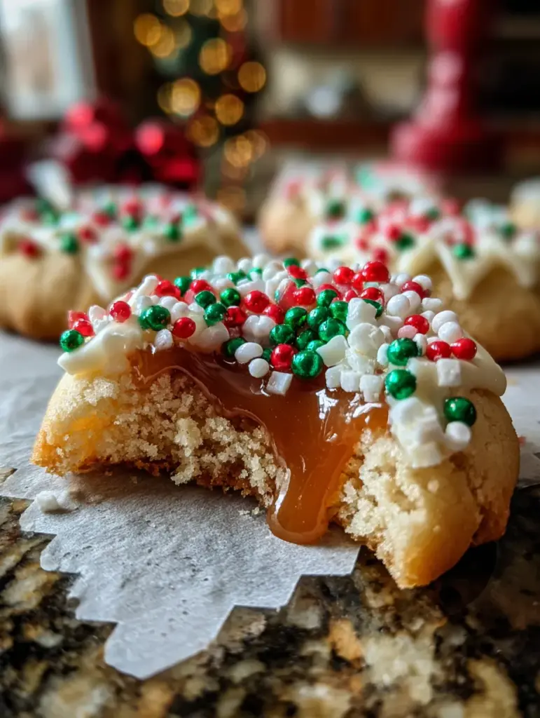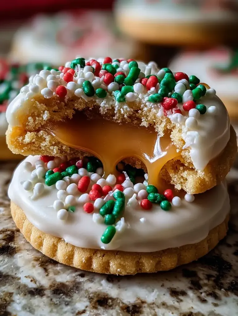 Here’s the thing: these cookies don’t just taste great—they hit every nostalgic holiday note. The caramel reminds you of grandma’s candies. The shortbread feels like something from a cozy bakery window. The sprinkles? Childhood magic.
