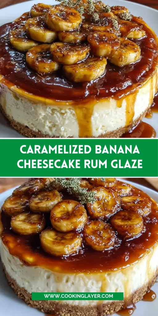 Making this Caramelized Banana Cheesecake Rum Glaze is more than simply whipping up a dessert; it’s about creating sweet memories. With luscious layers of creamy cheesecake, juicy caramelized bananas, and that irresistible rum glaze, this treat will have everyone returning for seconds! Plus, there’s nothing more satisfying than serving a homemade dish that brings smiles and happy chatter to the table. Whether for a special occasion or just a weeknight treat, this cheesecake is a celebration on a plate. So go ahead, embrace the joy of baking, and let your kitchen become the heart of delightful indulgence!