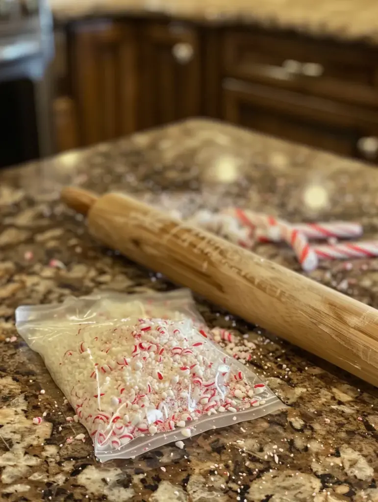⏱️ 3 minutesPlace the candy canes in a zip-top bag and crush them with a rolling pin until fine and crumbly.
