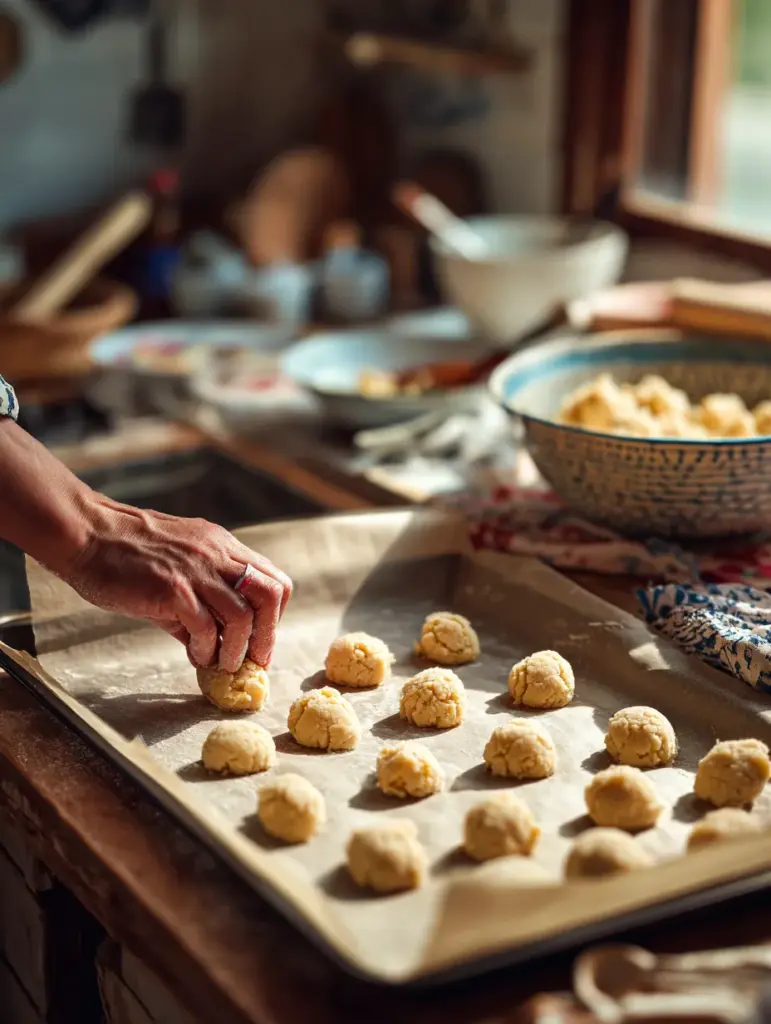 Wrap the dough and refrigerate to firm it for easier shaping. ❄️ (⏱️ 20–30 minutes)Shape the cookies.