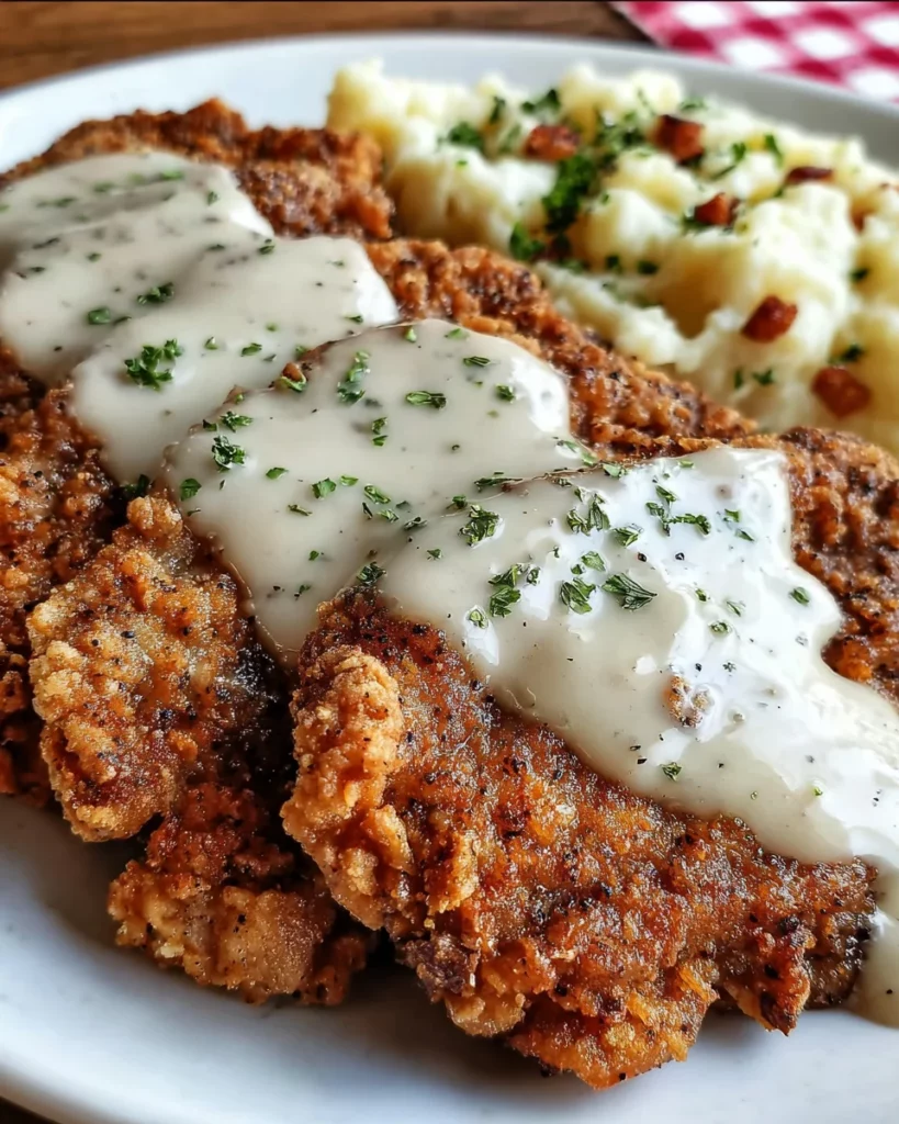 Chicken Fried Steak Country Gravy is a comforting and delicious dish, featuring breaded and fried steak smothered in a creamy white gravy.