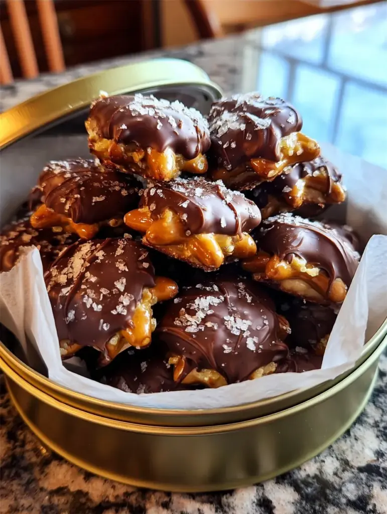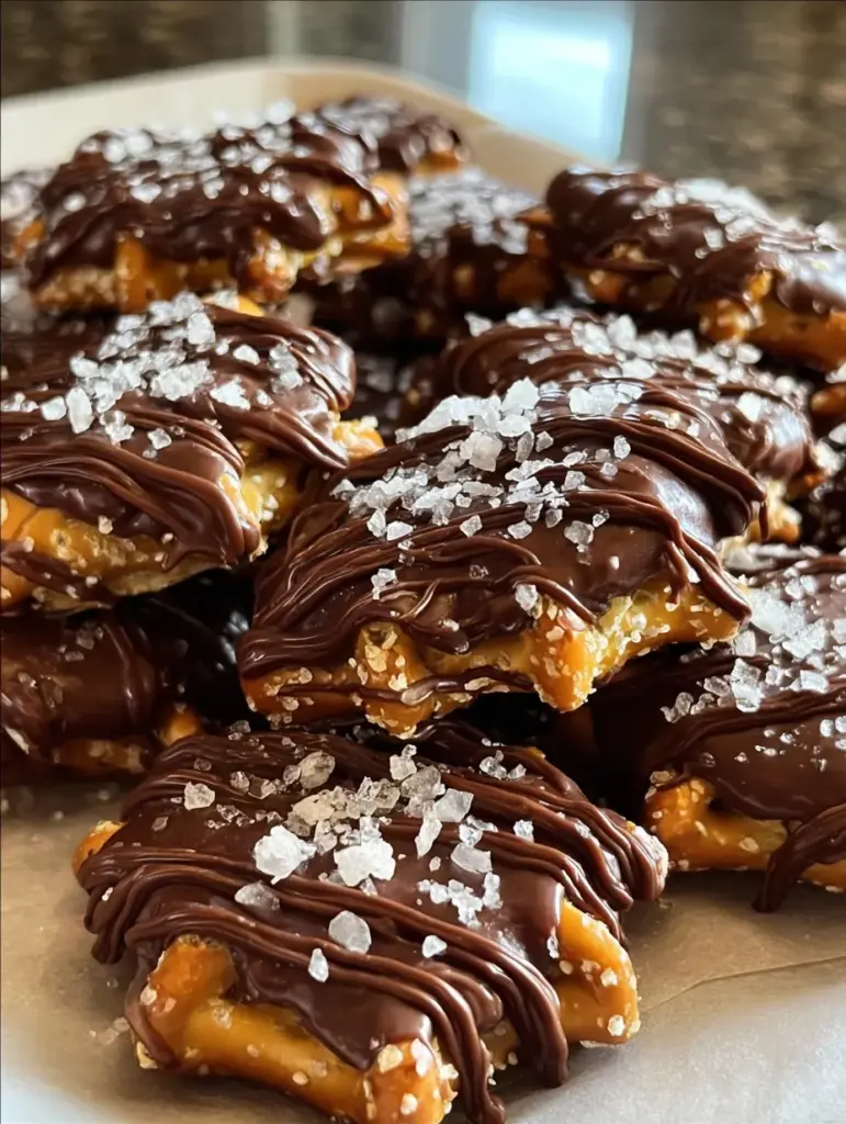 Imagine this: two salty mini pretzels hugging a warm pool of buttery soft caramel, all dipped in glossy melted chocolate, and topped with sparkling flakes of coarse sea salt. Now picture biting into that — the satisfying crunch of the pretzels, the silky pull of caramel, the melt-in-your-mouth chocolate… yeah, these are next-level.