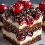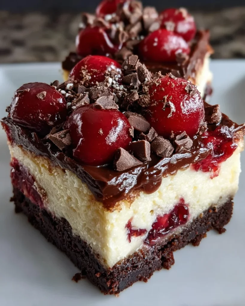 Decadent chocolate cherry cheesecake bars that combine a creamy filling with the rich flavors of chocolate and cherry.