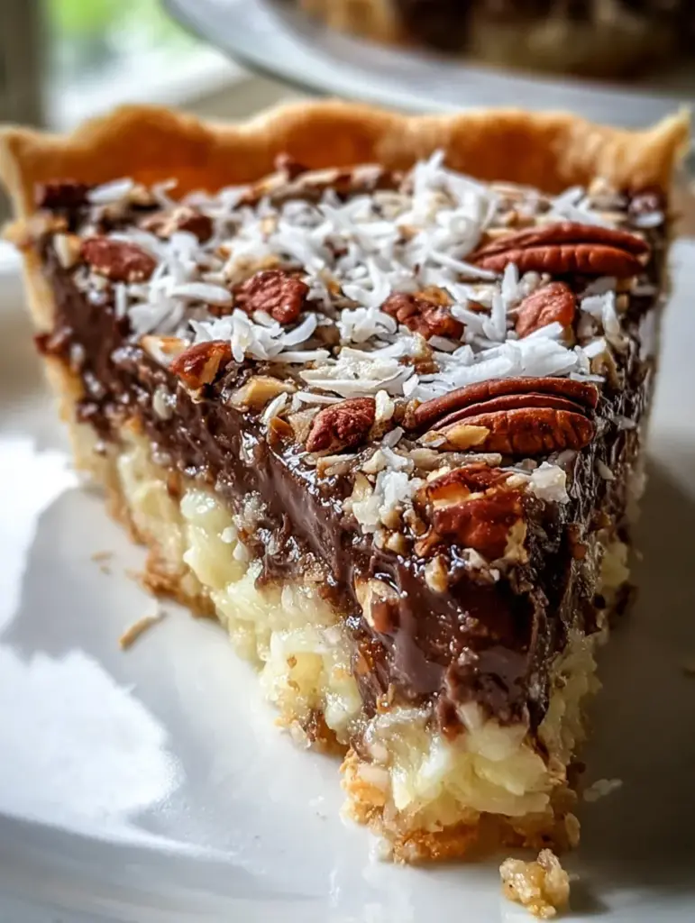 Each forkful gives you something different: creamy chocolate, sweet coconut, buttery pecans, and that satisfying crunch from the crust. It’s comfort food at its finest, wrapped in elegance and simplicity.