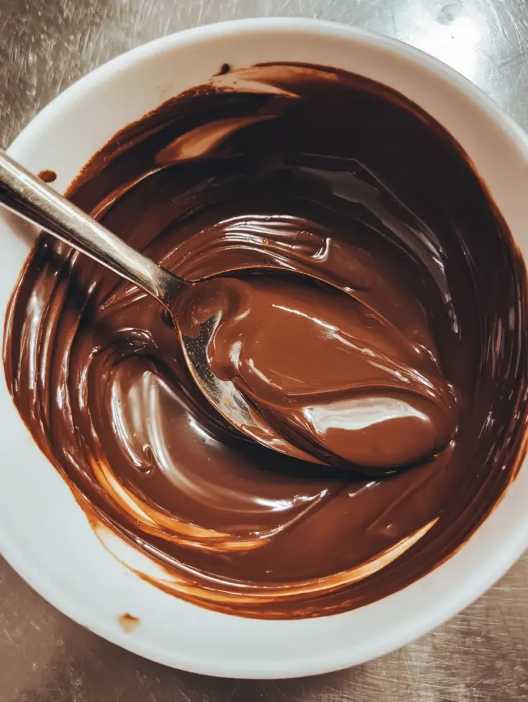 Melt the chocolate and optional oil in 30-second intervals until glossy and smooth. (⏱️ 1–2 minutes)