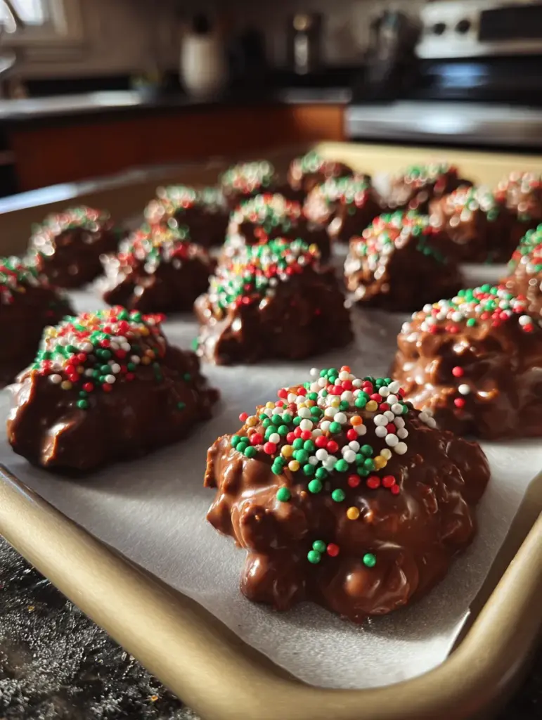 Now, let’s talk about the sparkle — the thing that instantly transforms these clusters from “delicious” to “OMG, these are adorable!” The sprinkles. Yes, those tiny festive bursts of red and green do more than just look pretty. They add a light crunch, a pop of color, and that unmistakable holiday charm.