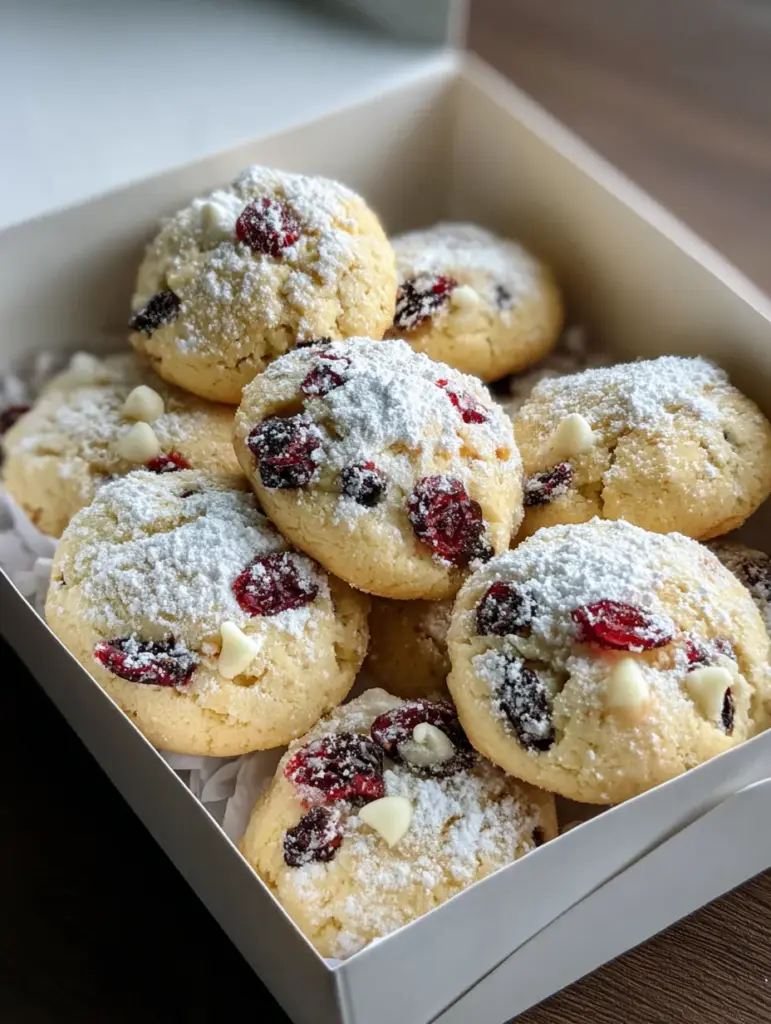 There’s something magical about a soft, sweet cookie dusted with snowy powdered sugar — especially when it’s loaded with creamy white chocolate and tangy dried cranberries. Introducing the White Chocolate Cranberry Snow Kiss Cookies — the ultimate festive treat that brings all the winter vibes in one perfect bite.