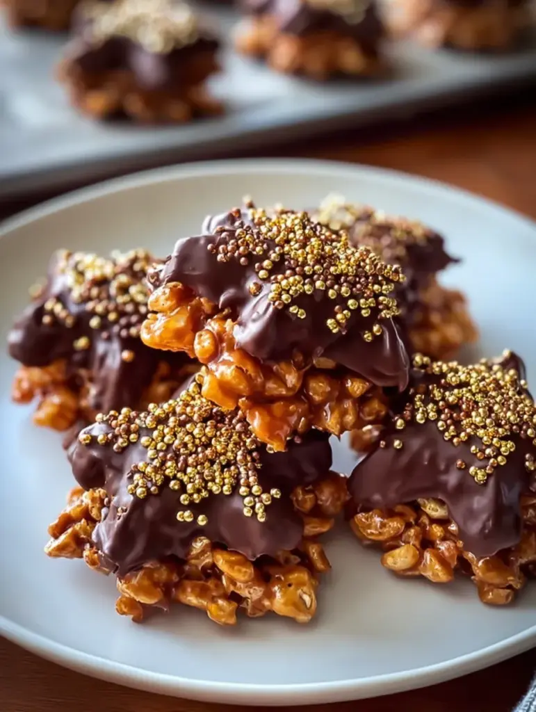 ⭐ Chewy, golden caramel mixed with crispy crunch, dipped in silky chocolate, and sprinkled with shimmering stars — the perfect festive treat everyone will reach for first! ✨🍫⭐