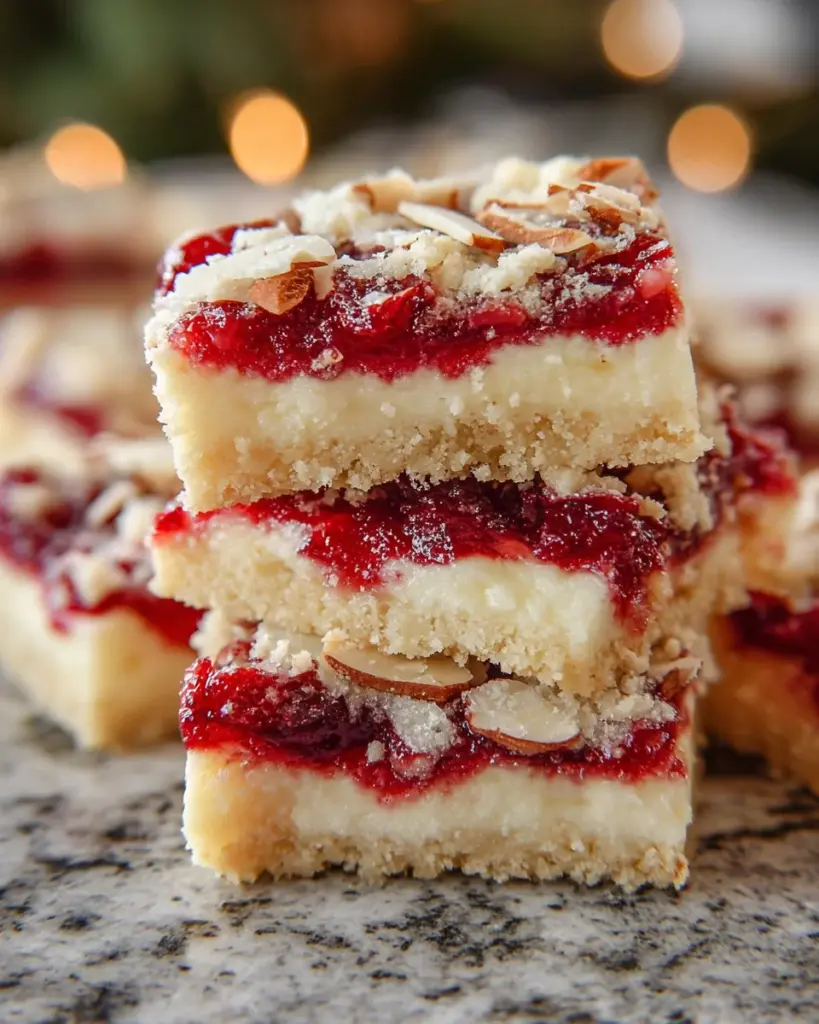 Delicious Christmas Cheesecake Bars that are perfect for the holiday season, combining a creamy cheesecake layer with cherry pie filling and a crumbly crust.