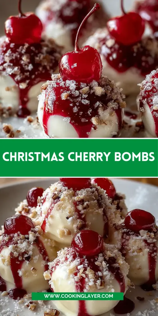 Christmas Cherry Bombs are a delightful festive treat combining maraschino cherries filled with a creamy mixture and coated in white chocolate and crunchy toppings.