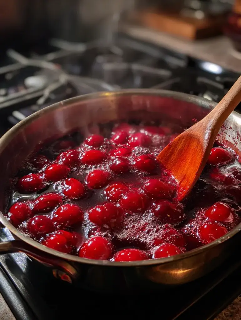 Don’t overcook the cherries — we want them glossy and juicy, not mushy. You want that pop of texture when you bite into each one.