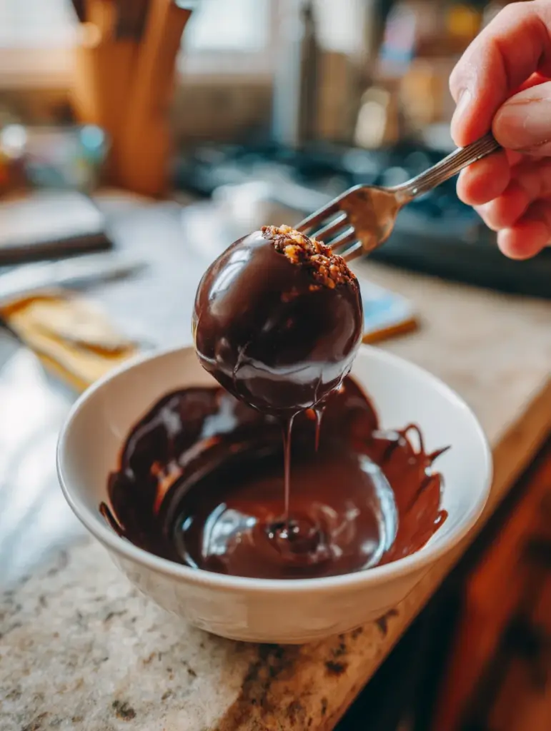 This is where the magic happens. Once the balls are dipped in chocolate, don’t wait too long to sprinkle on your toppings—the chocolate sets fast, especially if your kitchen is cool. You want to catch that sweet spot where it’s still glossy but not dripping.