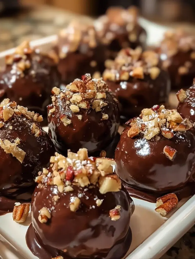 They’re soft on the inside, with a satisfying crunch from chopped pecans and graham cracker crumbs. The chocolate shell locks in all that sweet, nutty goodness, creating a luxurious bite that’s rich, satisfying, and worthy of any Christmas dessert tray.