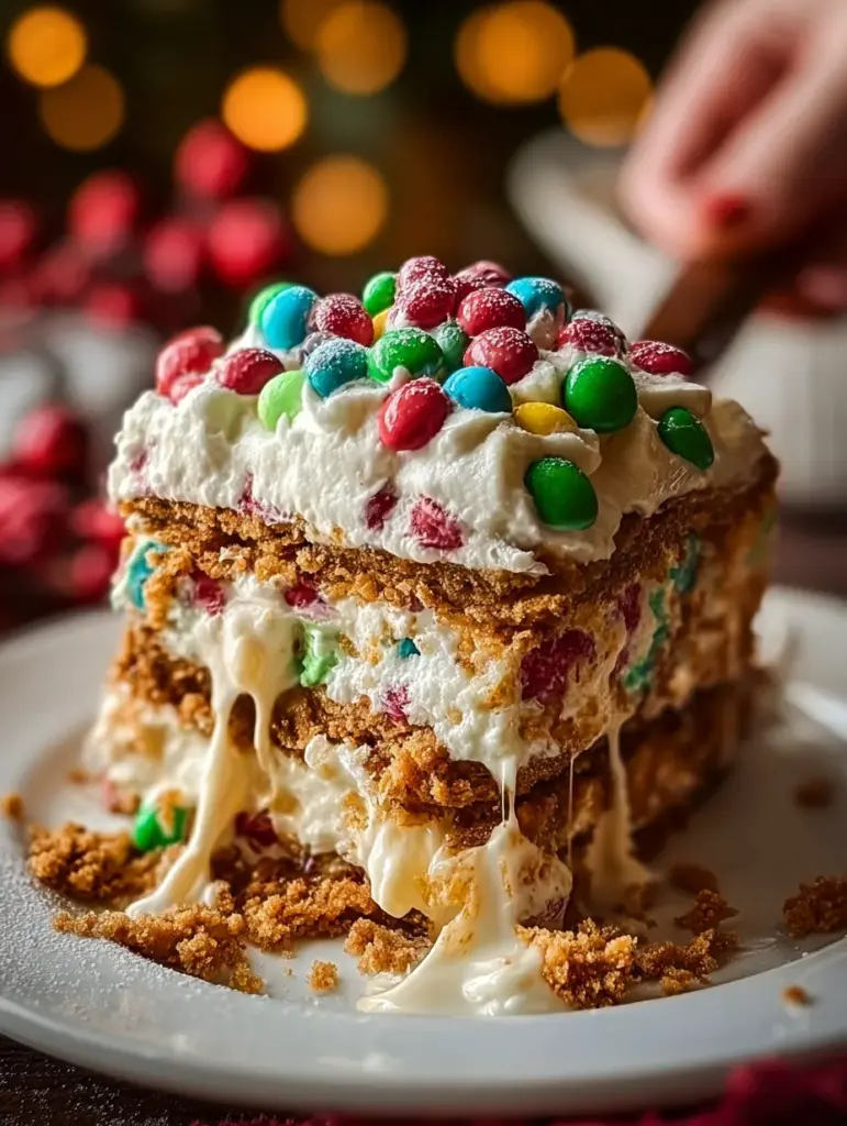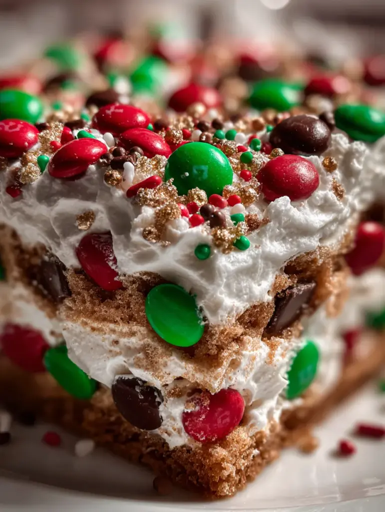 Sprinkle with festive sprinkles, mini M&M’s, and optional crushed candy canes or glitter.Chill & Serve (4+ hours) ❄️