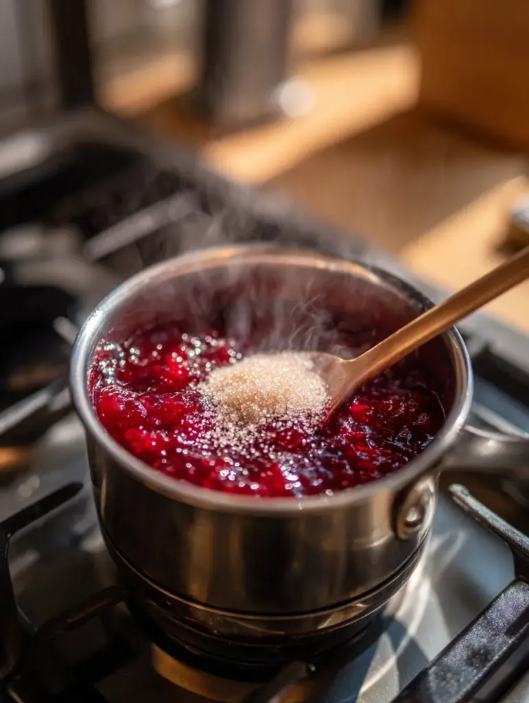 Heat it over medium, stirring until the mixture is smooth and the sugar dissolves. You’re aiming for a pourable consistency that still has some berry texture.