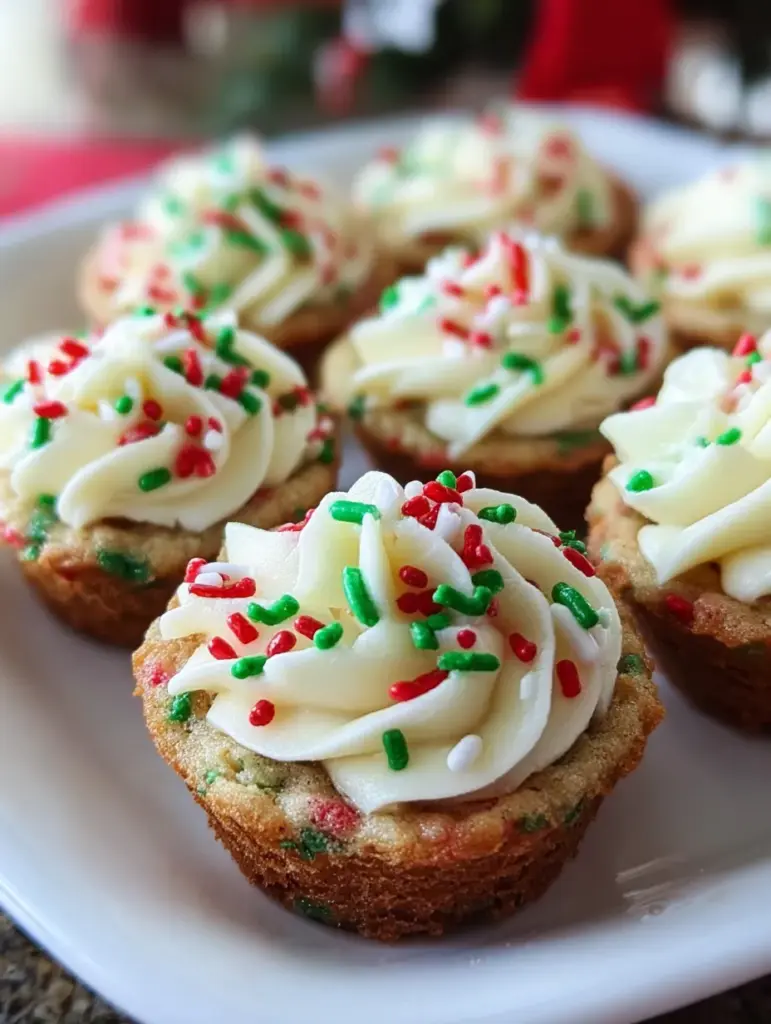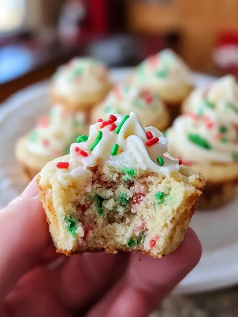 What makes these extra special? They’re super easy to make (yes, even for beginners), bake up beautifully in mini muffin tins, and they look just as festive as they taste! Think: sugar cookie meets cupcake meets a snow-globe full of sprinkles. 🎉