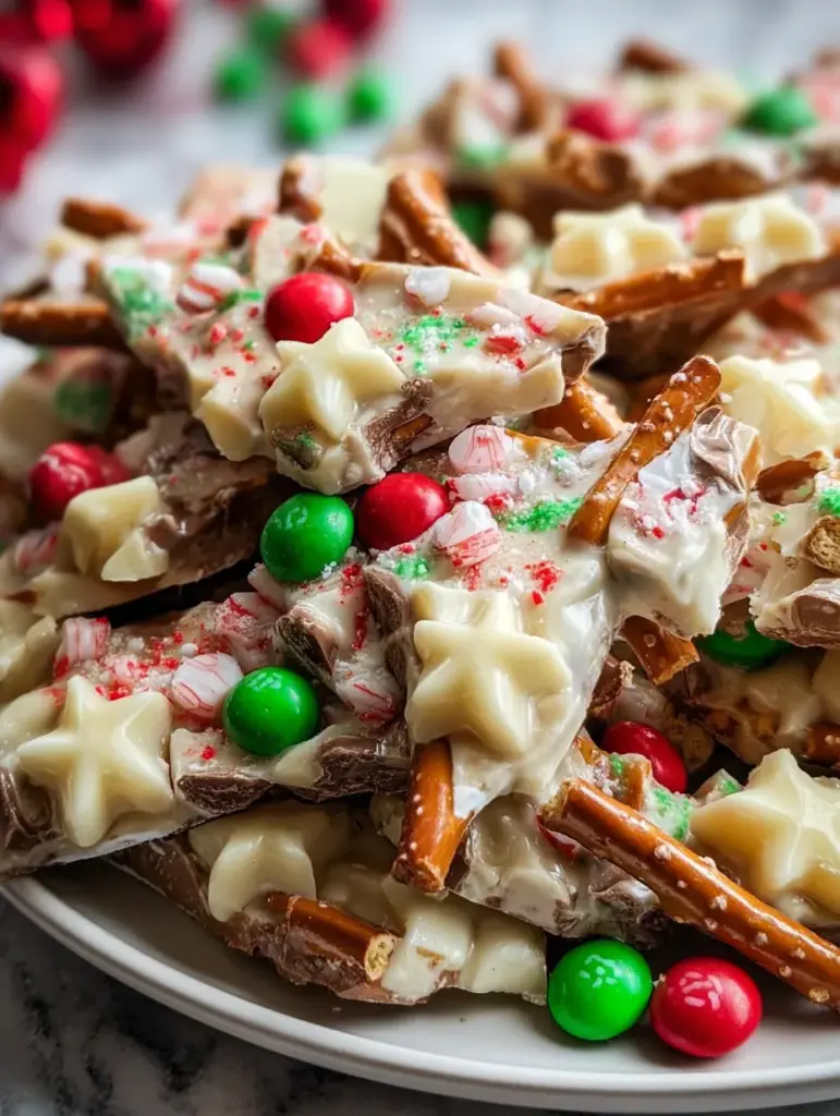 So grab your pretzels, melt that chocolate, and let the magic happen. This no-bake bark is what December dreams are made of—simple, sweet, salty joy in every colorful bite.