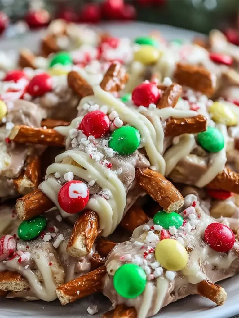 🎄✨ This is the kind of holiday treat that vanishes faster than you can refill the platter. Crunchy pretzels wrapped in silky chocolate, pops of peppermint, and those cheerful red-and-green candies make every bite feel like Christmas magic. Sweet, salty, and irresistibly festive — the kind of snack everyone sneaks “just one more” piece of. ❤️💚🍫