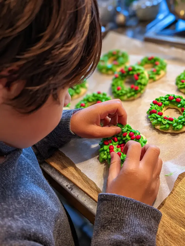 Let each child scoop, shape, and decorate their own mini wreath. You’ll have a room full of giggles, sticky fingers, and sweet memories.