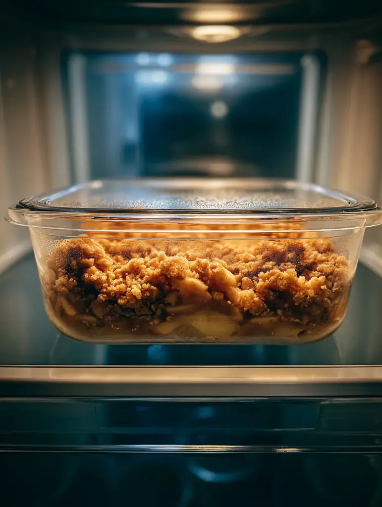 The crumble topping — that mix of butter, sugar, and flour — turns golden and crunchy in the oven, creating a perfect contrast to the soft, tender fruit beneath. It’s like nature’s candy topped with a cookie crust.