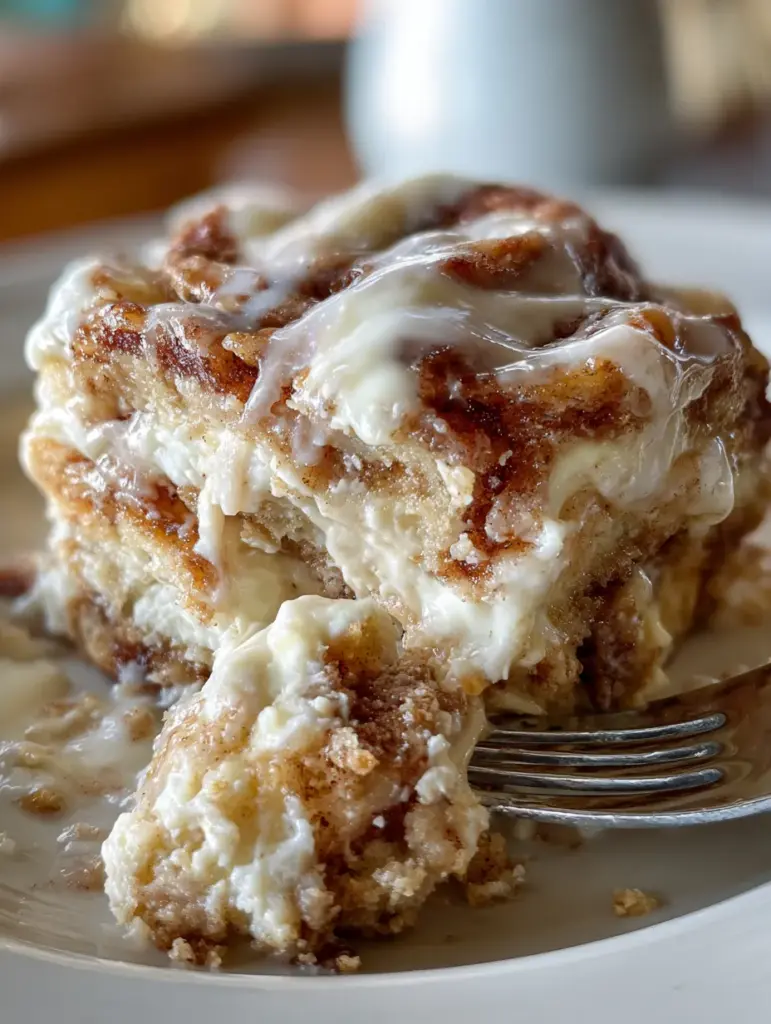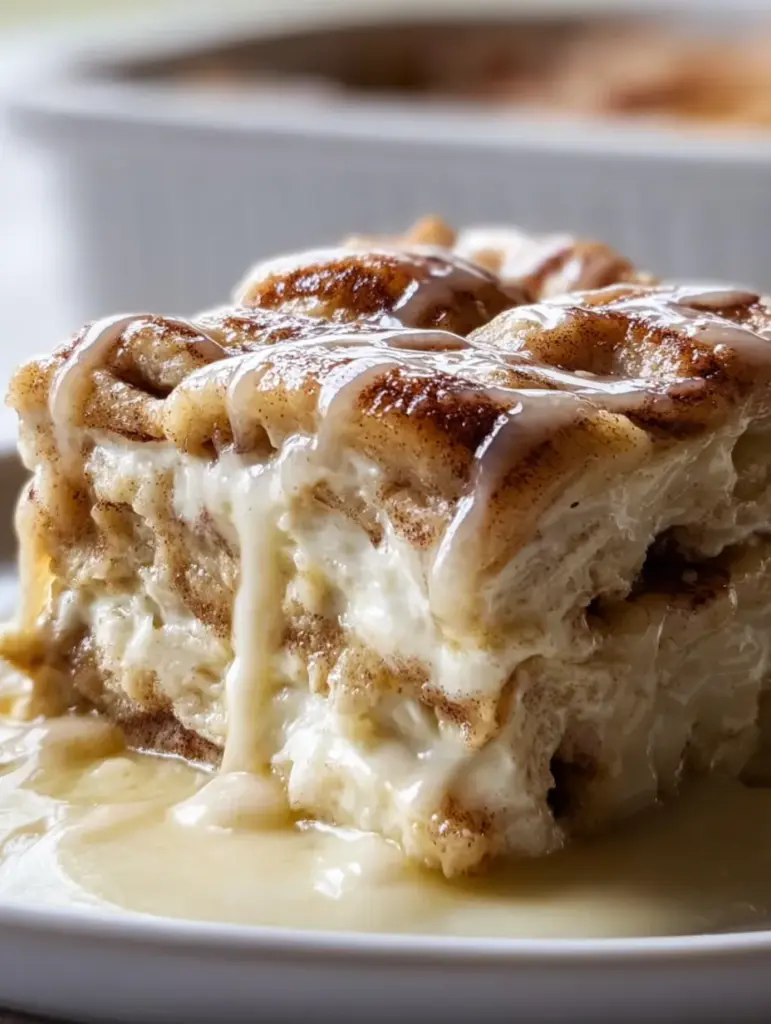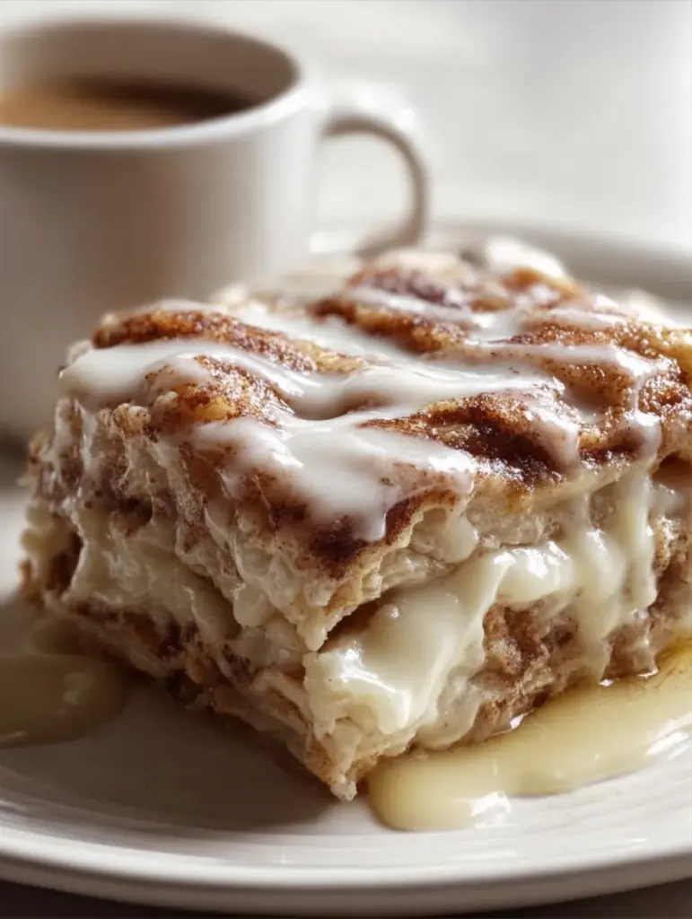 This recipe was written to match the final image perfectly: ultra-creamy layers, soft cinnamon roll texture, visible swirls, and icing that doesn’t harden — it melts. No apples. No caramel. No distractions. Just cinnamon roll goodness taken to the next level.